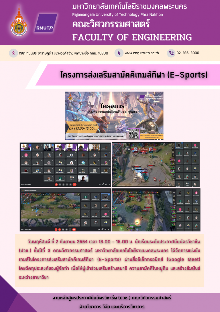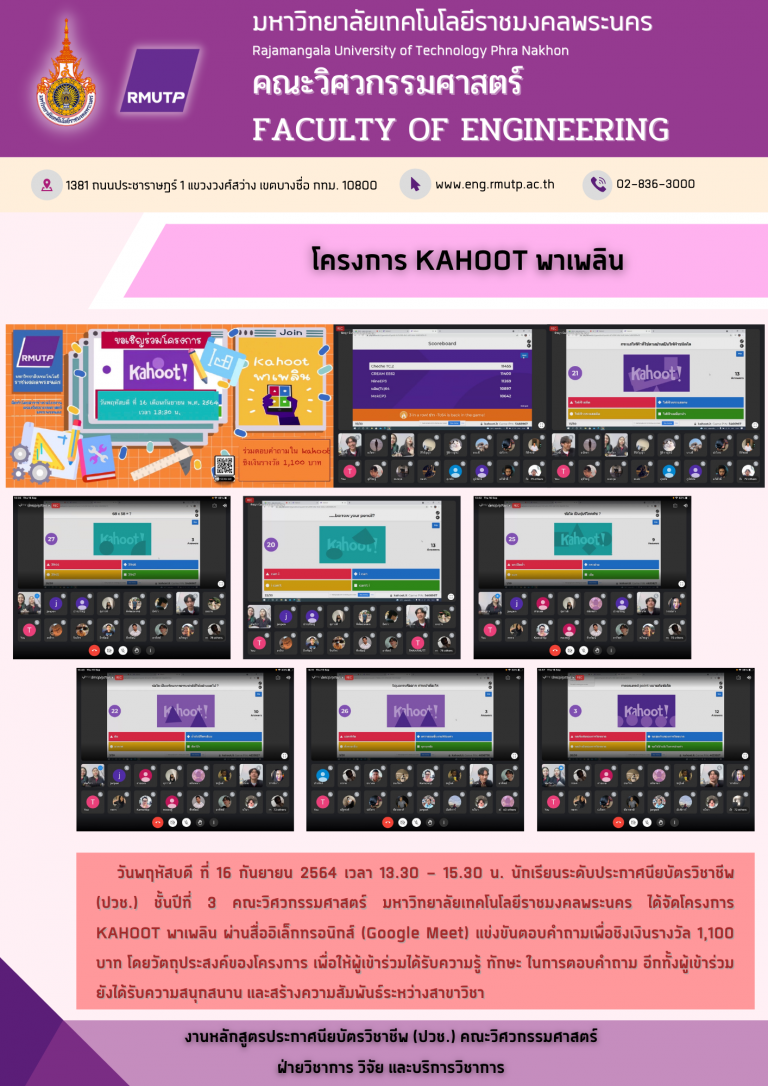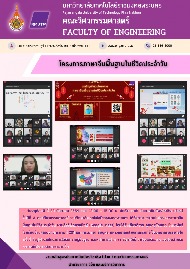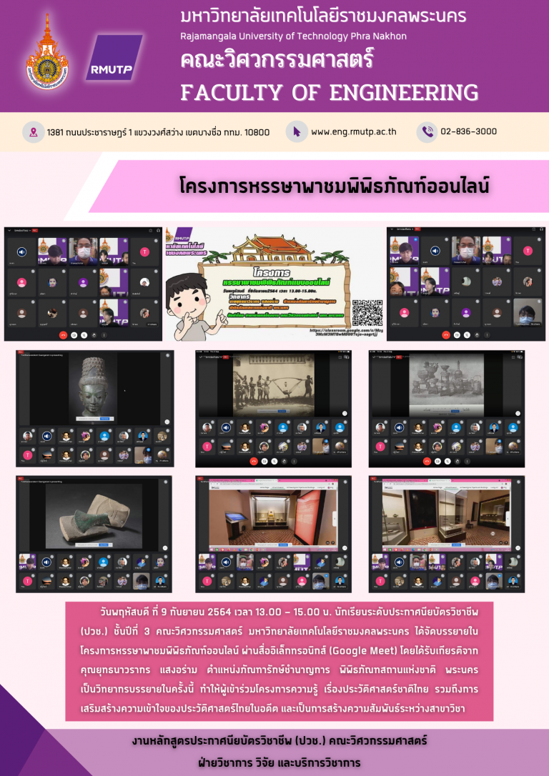 โครงการ มทร.ร่วมใจต้านภัยโควิด วันที่ 26 สิงหาคม 2564 ผ่านสื่ออิเล็กทรอนิกส์ (Google Meet)